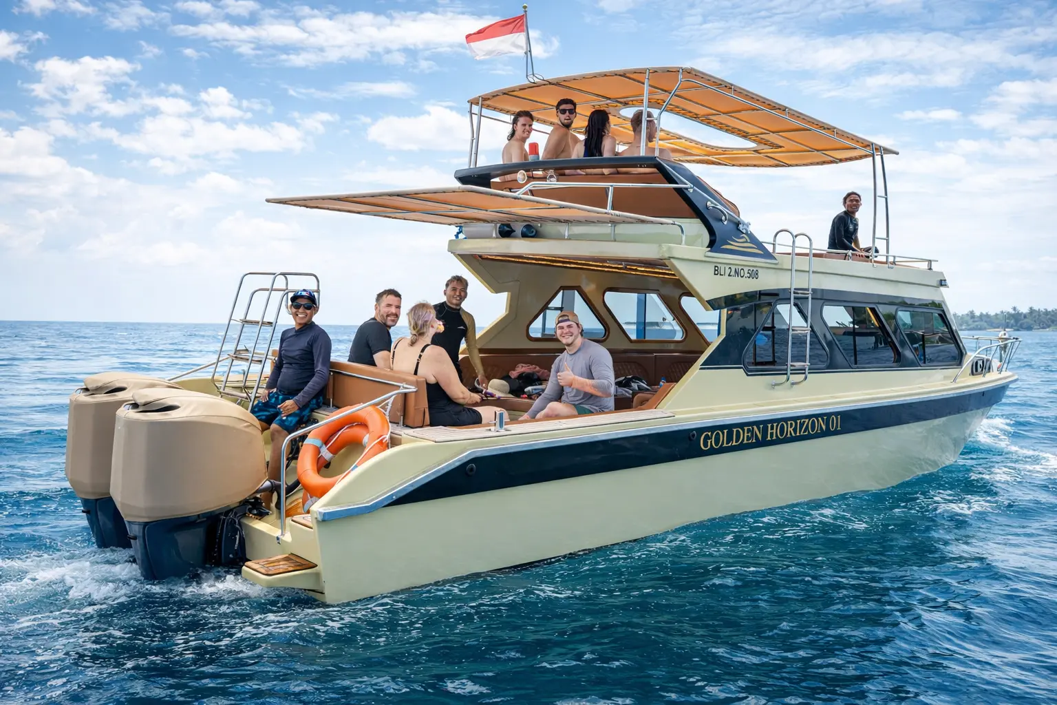 Posted on Imanuel ManualTrustindex verifies that the original source of the review is Google. Posted on Komang PurnayaTrustindex verifies that the original source of the review is Google. Posted on Ruli AndaniTrustindex verifies that the original source of the review is Google. Terimakasih banyak. Golden Horison Lokasi nya sangat strategis dan pelayanan sangat Ramah , Recommend pokonya Bout nya sangat Aman dan Mobil Tour Nya sangat Bersih dan Wangi Tentu nya semua Crew 100% TopPosted on nusa TvTrustindex verifies that the original source of the review is Google. Posted on Made PandeTrustindex verifies that the original source of the review is Google. Posted on O T A R Z A NTrustindex verifies that the original source of the review is Google. Posted on Putu AskhaTrustindex verifies that the original source of the review is Google. Posted on Arnold Parasian NababanTrustindex verifies that the original source of the review is Google. Posted on Adeline Le CamTrustindex verifies that the original source of the review is Google. Great experience overall with a very professional and attentive team. The crew was always smiling, helpful, and created a positive, relaxed atmosphere throughout the day. Safety and guest comfort were clearly a priority, and the organization was smooth from start to finish. It’s worth noting that the sea conditions were quite rough that day, with strong waves and currents. I personally found it challenging and felt uncomfortable at times, so I would recommend that anyone prone to seasickness or sensitive to rough conditions come well prepared! Aside from this, everything else was excellent. The team handled the conditions calmly and professionally, and their attitude really made the experience enjoyable. Highly recommended for the quality of the crew, wild experience, and overall service.Posted on Luca AndreaTrustindex verifies that the original source of the review is Google. From start to finish, our experience with Golden Horizon was truly outstanding. The entire team was incredibly professional, well-organized, and genuinely caring toward every guest on board. From the moment we arrived, the crew made us feel safe, welcomed, and well looked after. They were always attentive, patient, and happy to help, whether it was assisting with equipment, explaining the snorkeling spots, or simply making sure everyone was comfortable. What really stood out was how friendly and approachable the crew was. They created a relaxed and positive atmosphere while still maintaining high safety standards throughout the trip. You could clearly see that they work as a solid team and take pride in what they do. Everything ran smoothly, and we never felt rushed or ignored. Golden Horizon delivers not just a tour, but a high-quality experience led by people who truly care about their guests. Highly recommended for anyone looking for a professional, safe, and enjoyable trip.